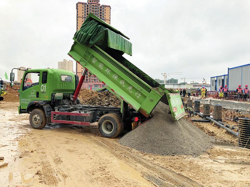 自治區人民醫院邕武醫院擴建項目使用建筑垃圾再生骨料。(鄒毅 攝)